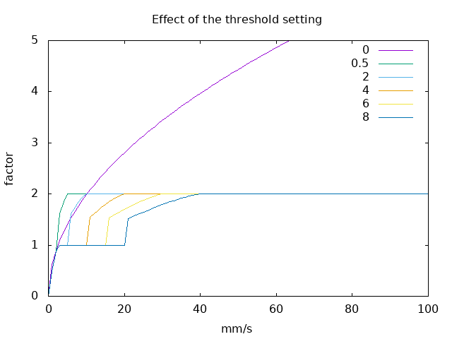 Back to the profile function and how it works: The threshold (usually) defines the mimimum speed at which acceleration kicks in. The max accel factor (usually) limits the acceleration. So the simplest algorithm is